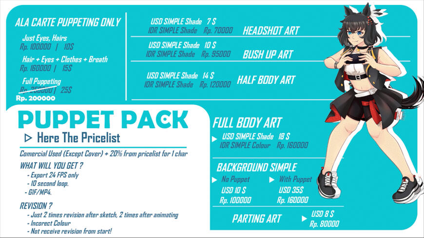 >Rp. 200000 | 30$ ---- Full Puppeting
